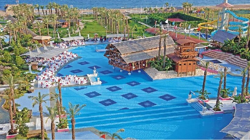 Dit luxe resort ligt in de populaire badplaats Lara, op 15 minuten afstand van Antalya. Dat heeft een prachtige vakantiebestemming met een rijk verleden en één van de belangrijkste vakantiebestemmingen van Turkije. De stad beschikt over een oud centrum waar je uren kunt rondlopen en genieten van de vele markten, thee- en koffiehuizen, boektiekjes en restaurants. Vroeger woonden veel Grieken en Armeniers in Antalya, hiervan zijn nog steeds oude kloosters en kerken overgebleven. Opvallend is dat middenin dit oude gedeelte van Antalya ook de populaire en moderne uitgaansgelegenheden gelegen zijn. In het centrum staan veel lokale handelaren waar je tot diep in de avond van alles en nog wat kunt kopen.